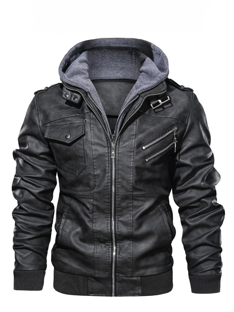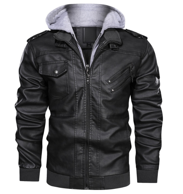 Biker-Lederjacke mit Kapuze
